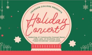 Holiday Concert December 2 7:00pm - 7:00pm Harold Sheffer Music Hall, Potter Center Celebrate the holiday with music from Jackson College’s instrumental groups – JC Community Concert Band, Jazzy Jets, JC Drumline, and… MORE